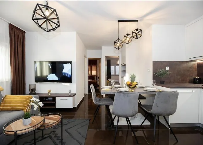 Wenn Sie einen frühen Flug aus Zadar haben, liegt das 48 m^2 große Warehouse Apartment Zadar 10 km vom Flughafen Zadar entfernt. Das Apartment bietet Zugang zu einer Terrasse und einem Innenhof sowie einer sonnigen Terrasse mit Blick auf den Innenhof.